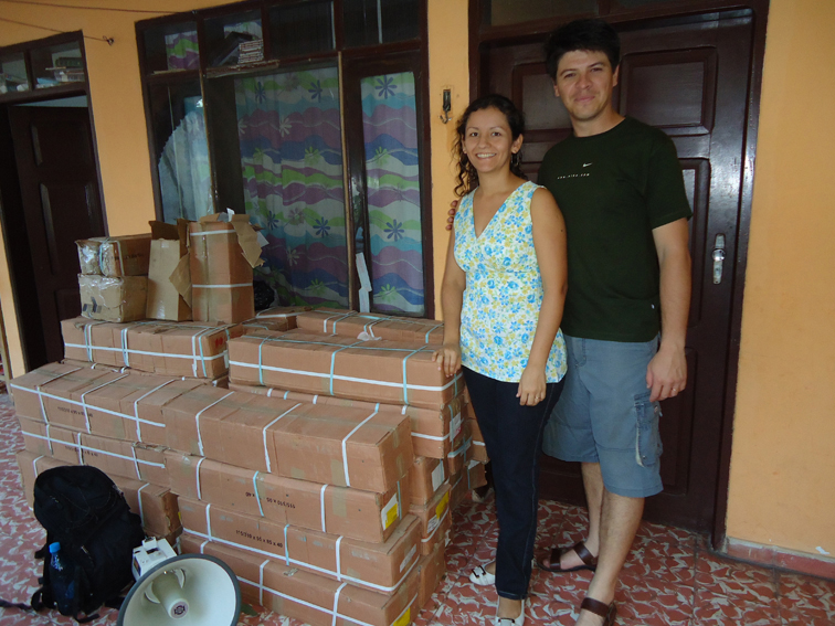 Material evangelístico chegando a Base de Missões em Santa Cruz de la Sierra