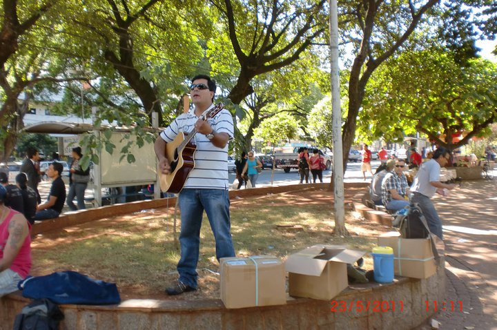 Fabio cantando e pregando no centro de Campo Grande, MS - Brasil